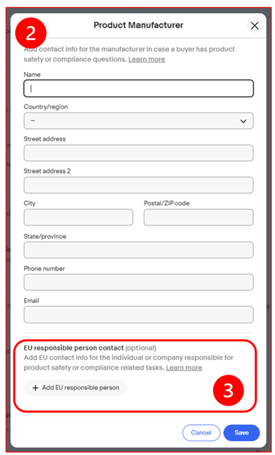 3.必要に応じてEUまたはNIに拠点を置く「EU responsible person contact」を追加する
