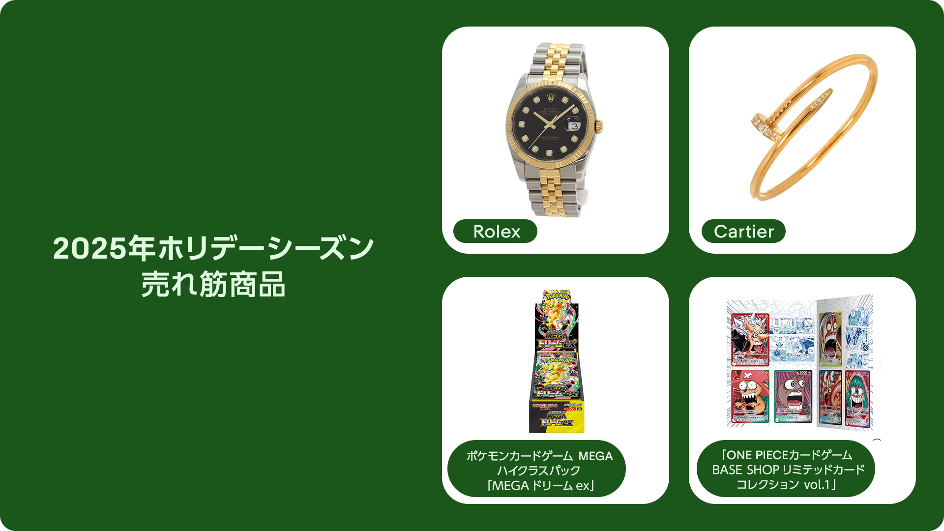 年末商戦期に発売されたポケモンカードが eBay 全体で好調に推移。US サイト(eBay.com )に限らず、 UK や AU サイトなど幅広いマーケットで取引が増加。ONEPIECE カードも年末にかけて取引数が大きく伸 長。特に年末商戦時に限定で販売された「ONEPIECE カードゲーム BASE SHOP リミテッドカードコレクシ ョン vol.1」が大きく伸長。